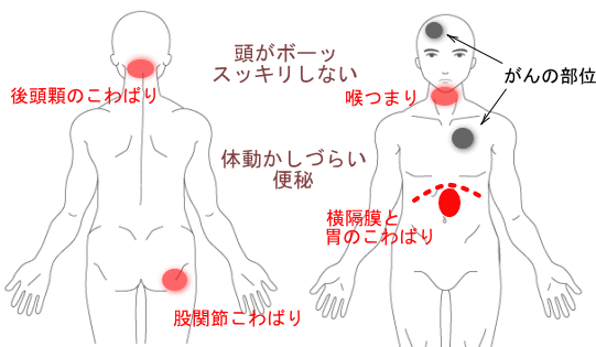 お体を診ると、特に横隔膜付近のこわばりが強くて色んな流れが滞っている様子。